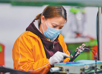4月15日,在广西龙胜各族自治县龙胜镇易地扶贫搬迁安置点的扶贫车间,贫困户在生产数据线。 庞革平 黄勇丹摄影报道 |